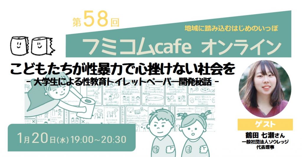 <1/20夜!オンライン開催>第58回フミコムcafe こどもたちが性暴力で心挫けない社会を -大学生による性教育トイレットペーパー開発秘話-