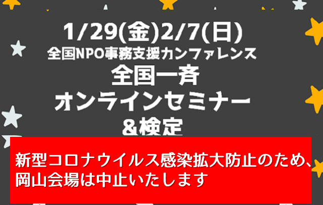 ★岡山会場は中止★全国NPO事務支援カンファレンス 全国一斉オンラインセミナー&検定