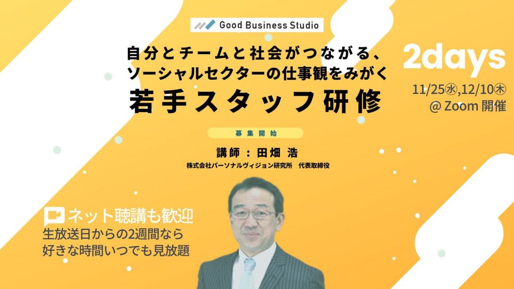【こんな人におすすめ!】●理念・ビジョン・ミッションをつくるコツ、メンバーと深く共有し合えるコツを知りたい!●メンバーがやりがいや意欲を感じながら活動できるようにしたい!●関係性づくりって難しい…みんなが楽しく活動できる […]