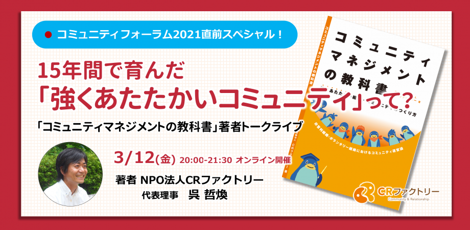 ■第一人者が語る!これからの時代の「つながり・コミュニティ」 来たる3月20日・21日は、コミュニティフォーラム2021です!開催に先駆けて、フォーラムの必読書である『コミュニティマネジメントの教科書』のトークライブを開 […]