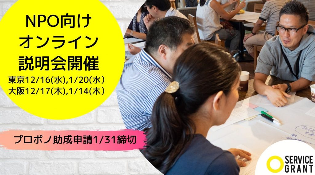 NPO・地域団体向けプロボノ説明会~団体の課題解決に向けて、専門的なスキル・経験を持つボランティアメンバーが支援します~