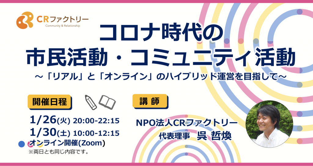 【オンライン開催(1/26,1/30)】コロナ時代の市民活動・コミュニティ活動 〜「リアル」と「オンライン」のハイブリッド運営を目指して〜